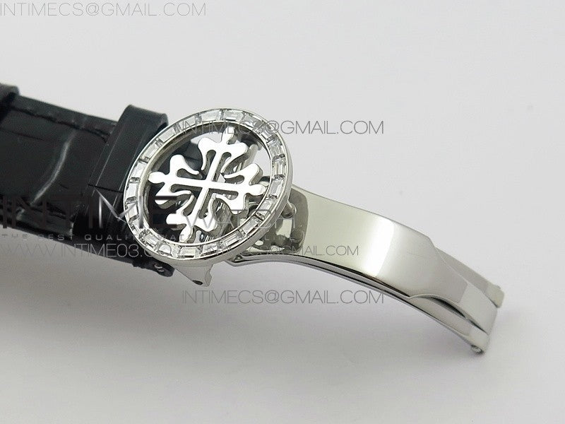 6104P Moon RG Black Dial Diamond Bezel on Black Leather Strap A240 V2 Menge