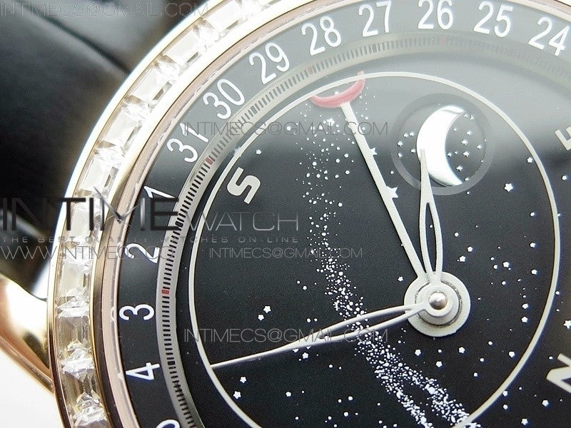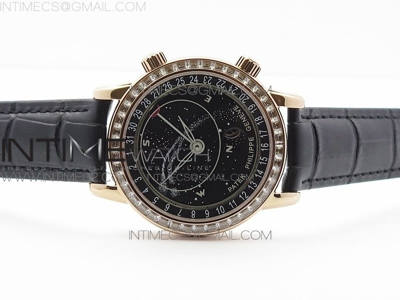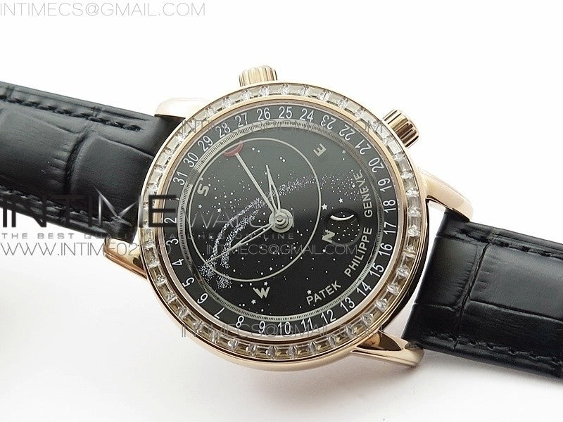 6104P Moon RG Black Dial Diamond Bezel on Black Leather Strap A240 Menge