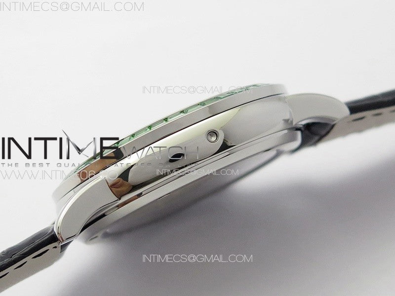 6104P Moon SS 3EF Best Edition Black Dial Green T Diamond Bezel on Black Leather Strap A240 Menge