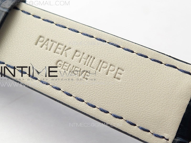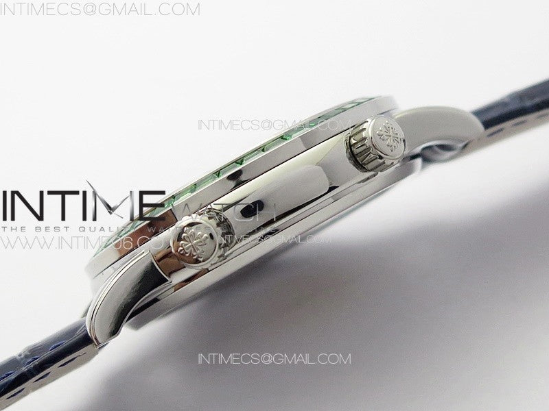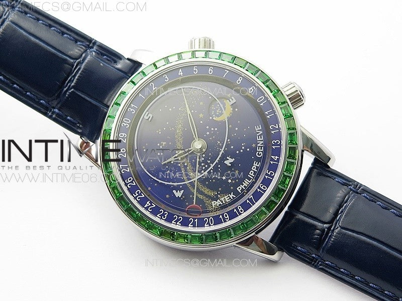 6104P Moon SS 3EF Best Edition Blue Dial Green T Diamond Bezel on Blue Leather Strap A240