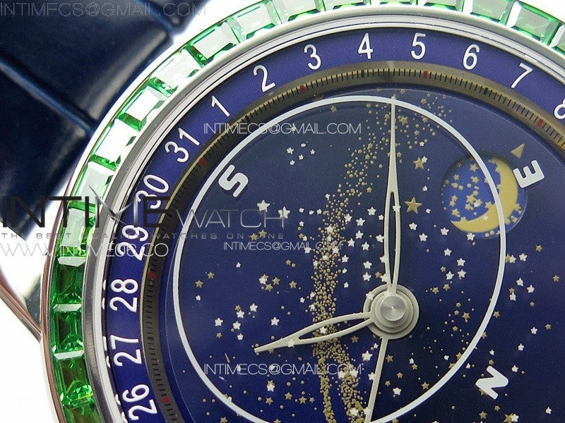6104P Moon SS 3EF Best Edition Blue Dial Green T Diamond Bezel on Blue Leather Strap A240 Menge