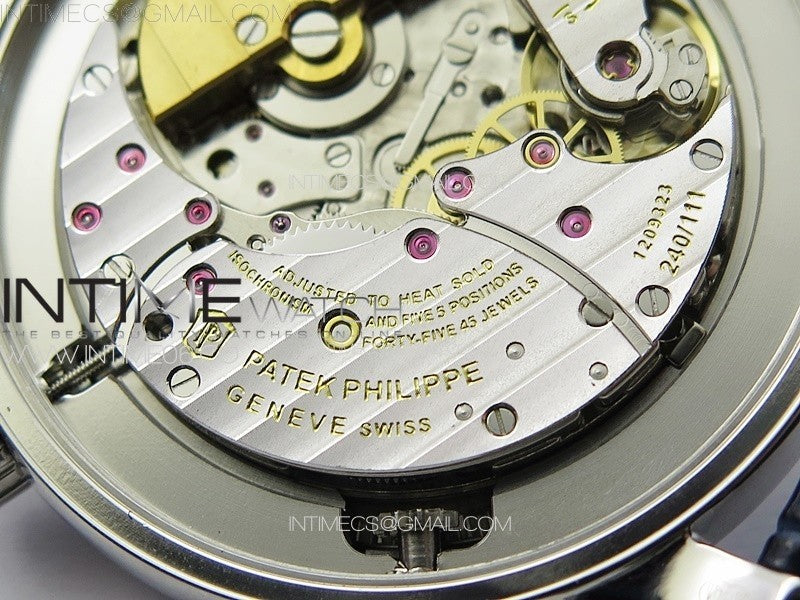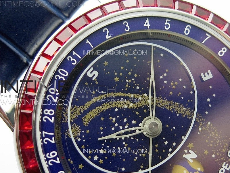 6104P Moon SS 3EF Best Edition Blue Dial Red T Diamond Bezel on Blue Leather Strap A240 Menge