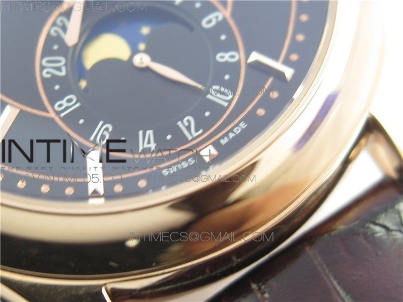 6104P Moon RG Black Dial Diamond Bezel on Black Leather Strap A240
