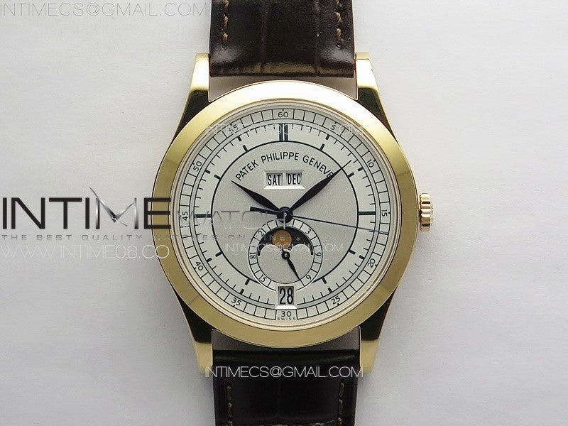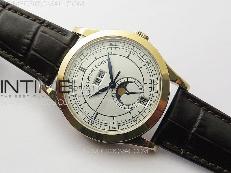 Annual Calendar Moonphase 5396 RG PPF 1:1 Best Edition White/Blue Dial on Brown Leather Strap A324 Menge