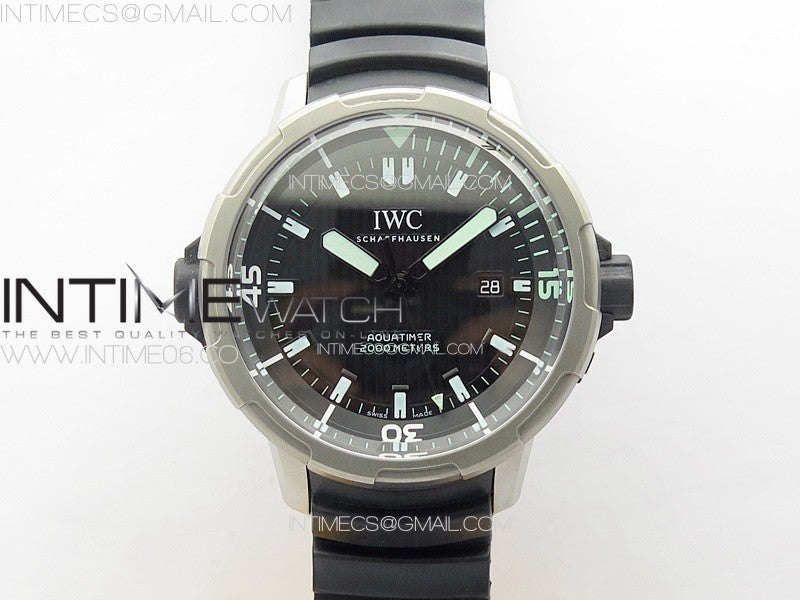 Aquatimer IW358002 SS V6S 1:1 Best Edition Black Dial White Sticks Markers on Black Rubber Strap A2824
