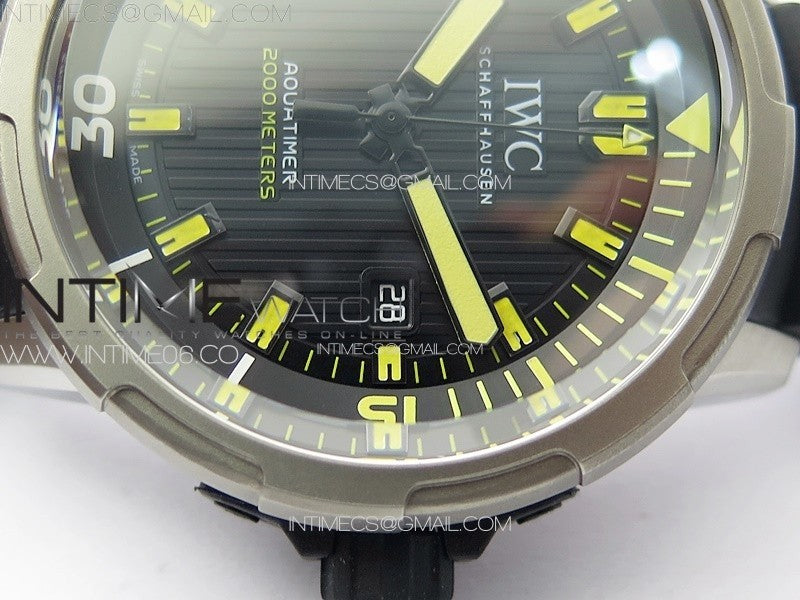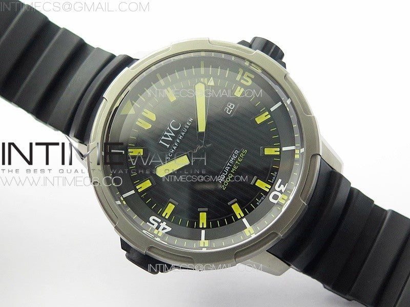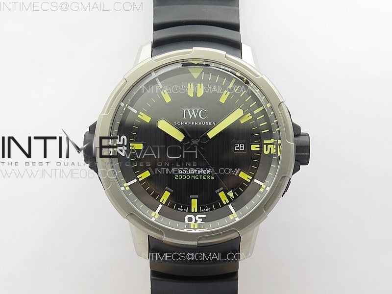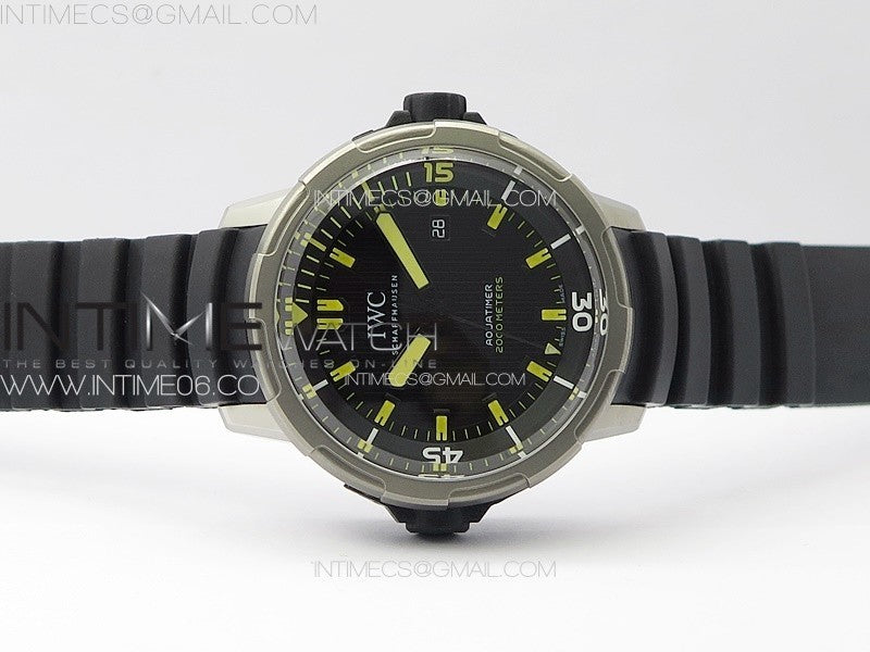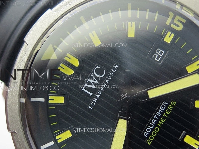 Aquatimer IW358002 SS V6S 1:1 Best Edition Black Dial Yellow Sticks Markers on Black Rubber Strap A2824