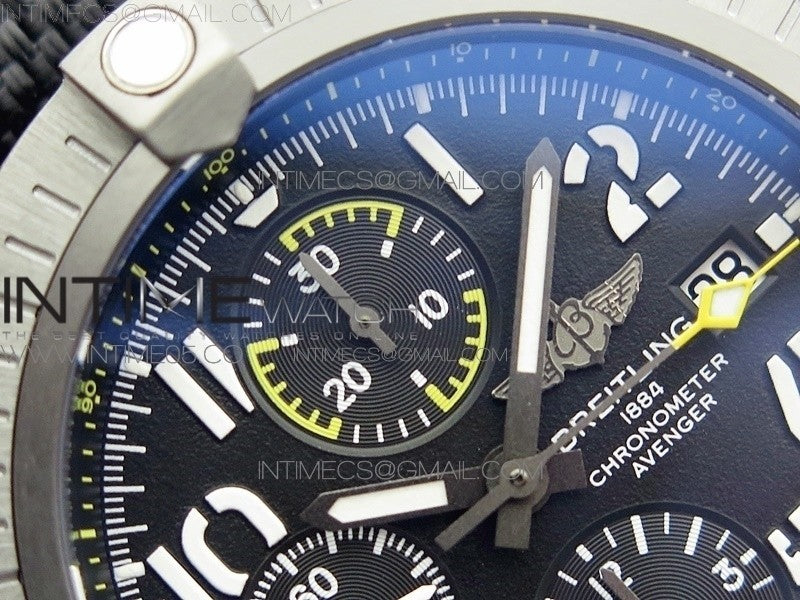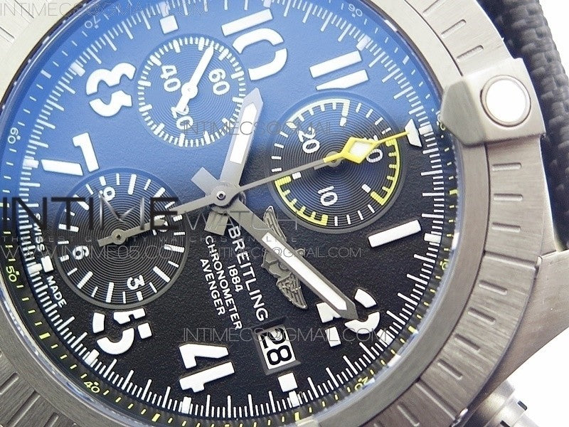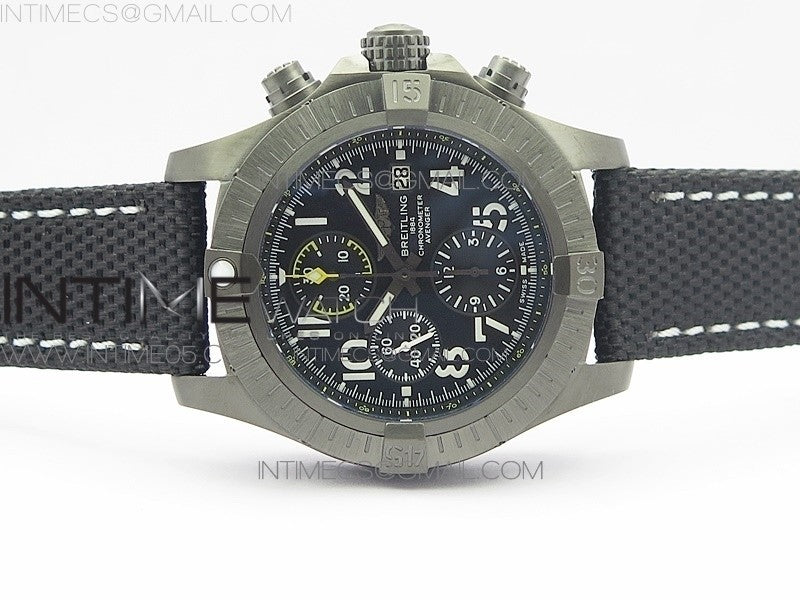 Avenger Bandit V13317 Titanium DLC B50 Best Edition Black Dial Numbers Makers on Black Nylon strap A7750