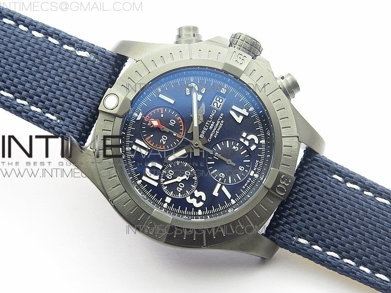 Avenger Bandit V13317 Titanium DLC B50 Best Edition Blue Dial Numbers Makers on Blue Nylon strap A7750
