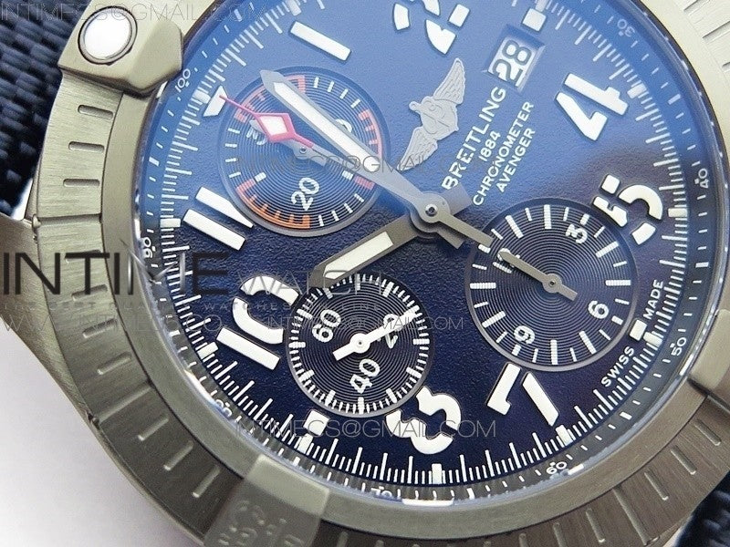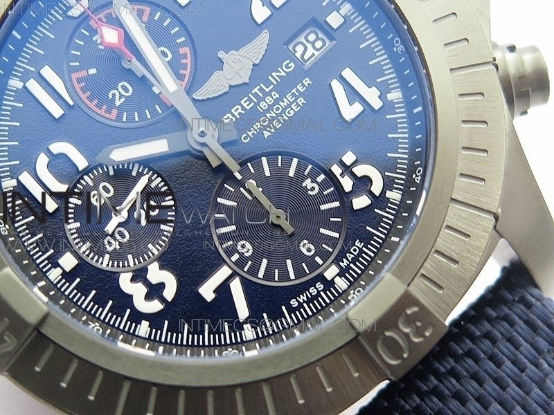 Avenger Bandit V13317 Titanium DLC B50 Best Edition Blue Dial Numbers Makers on Blue Nylon strap A7750 Menge
