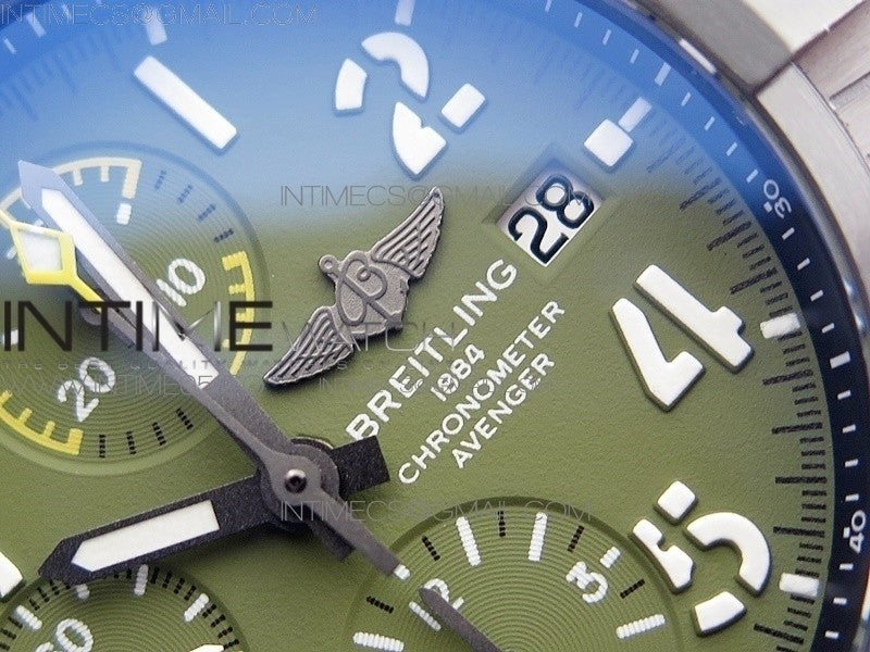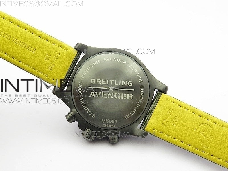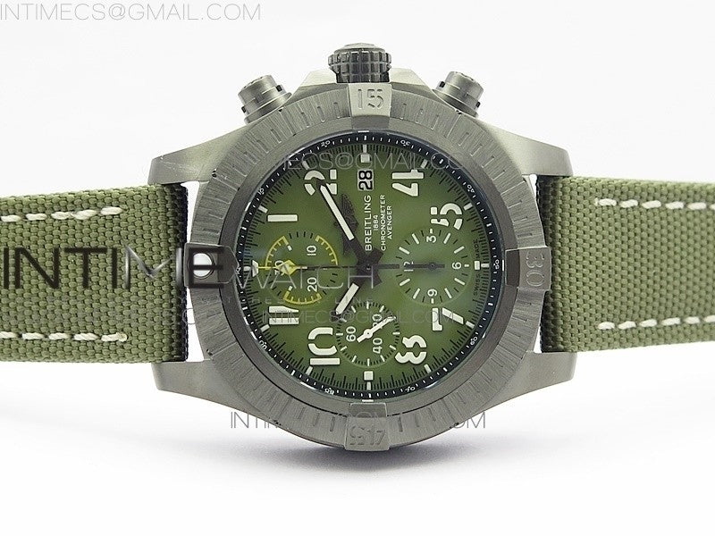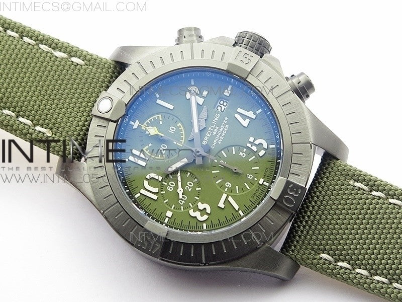 Avenger Bandit V13317 Titanium DLC B50 Best Edition Green Dial Numbers Makers on Green Nylon strap A7750 Menge