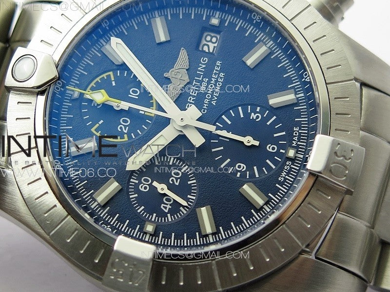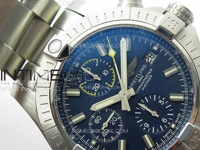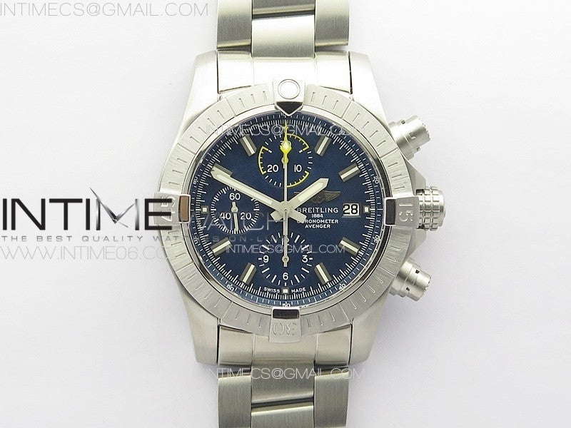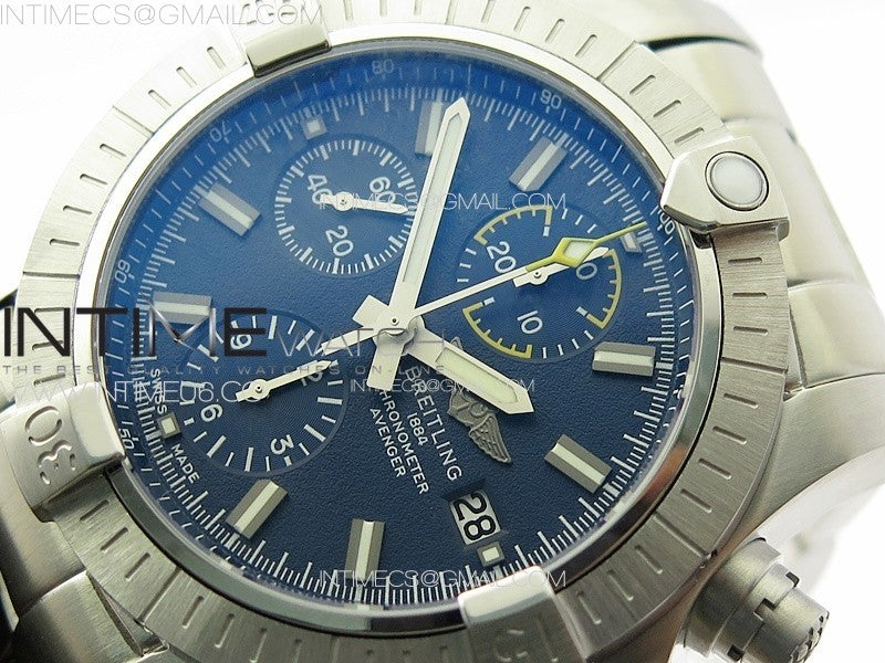 Avenger Chrono SS Yellow Second hand B50 Blue Dial on SS Bracelet A7750 Menge