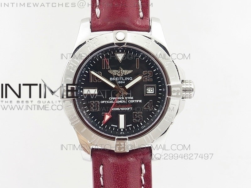 Avenger GMT SS Black Numeral Marker Dial on Leather strap A2836 Menge
