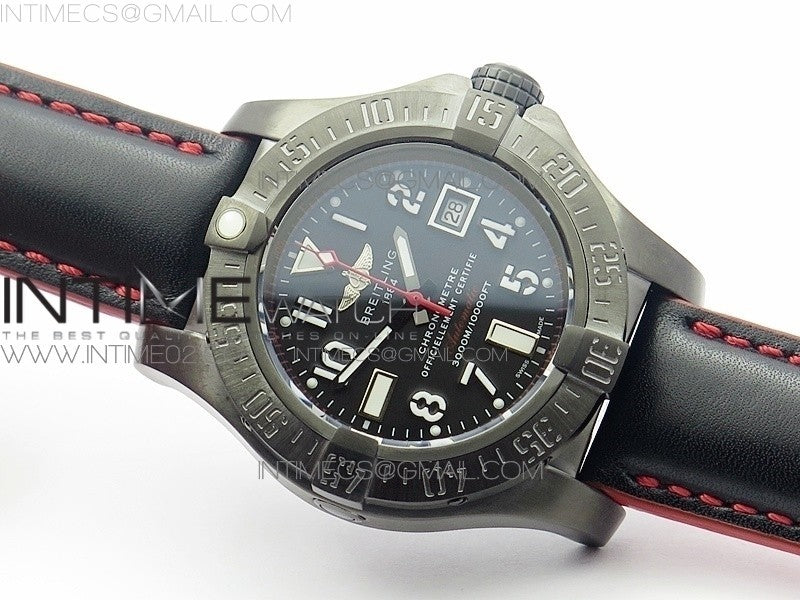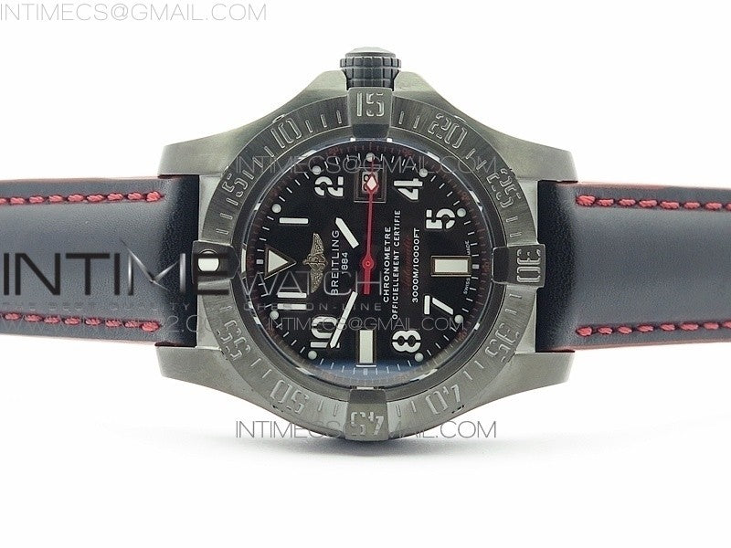 Avenger II Seawolf DLC V2 Best Edition Black Dial Numeral Markers Red Second Hand on Black Strap A2836(Free Brown Leather Strap