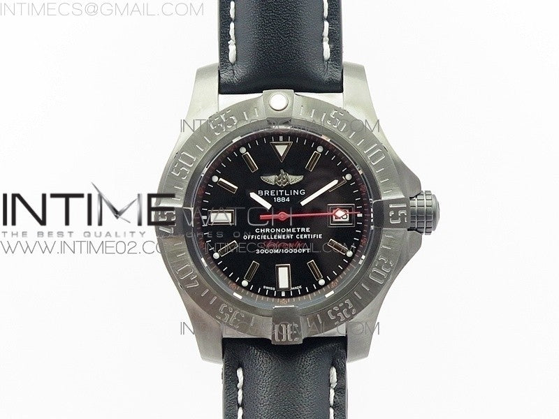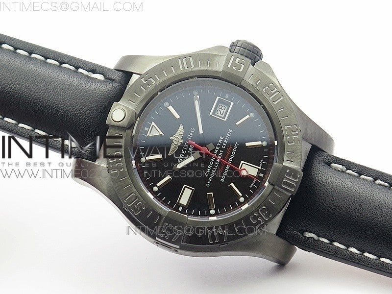 Avenger II Seawolf DLC V2 Best Edition Black Dial Stick Markers Red Second Hand on Black Strap A2836 (Free Brown Leather Strap)