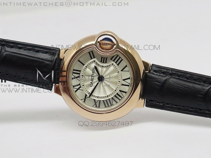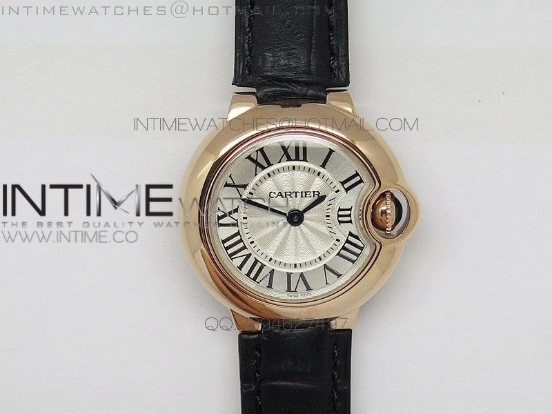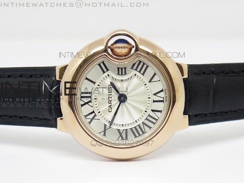 Ballon Bleu 28mm Ladies RG Case White Textured Dial on Brown Leather Ronda Quartz