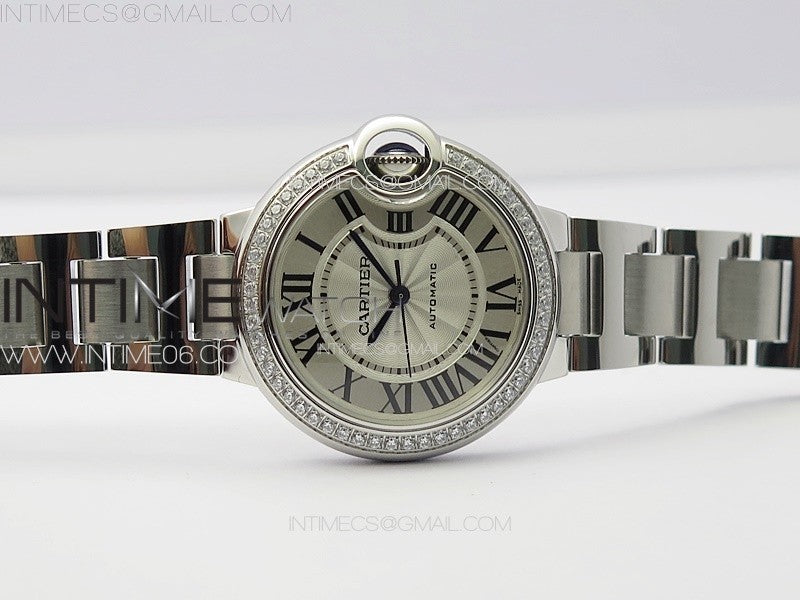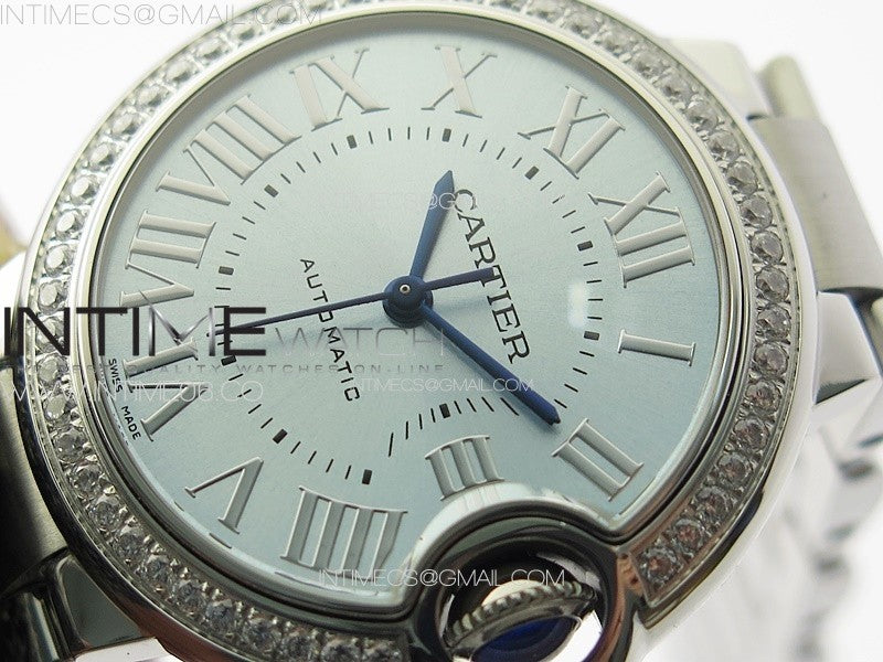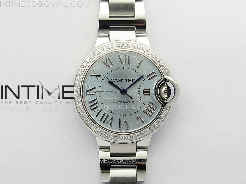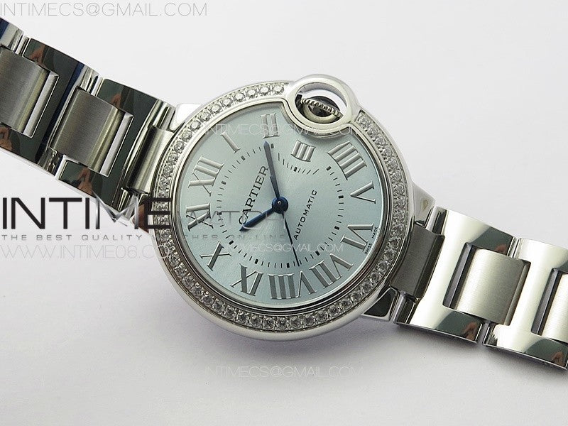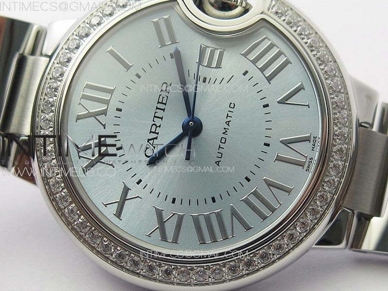 Ballon Bleu 33mm Diamonds Bezel SS K3F 1:1 Best Edition Ice Blue Dial on SS Bracelet A076