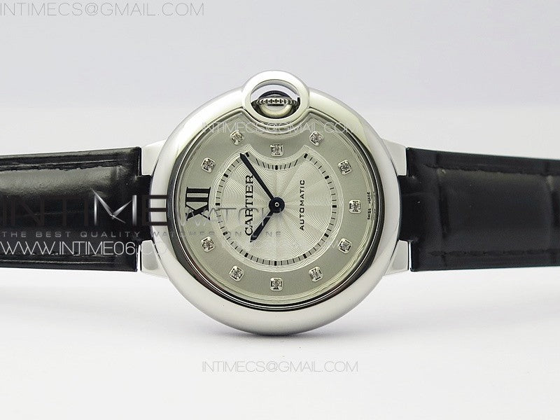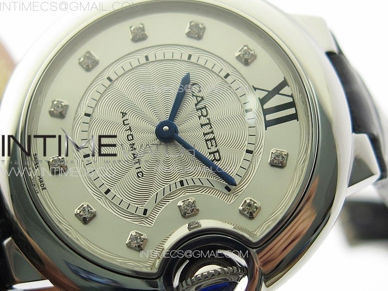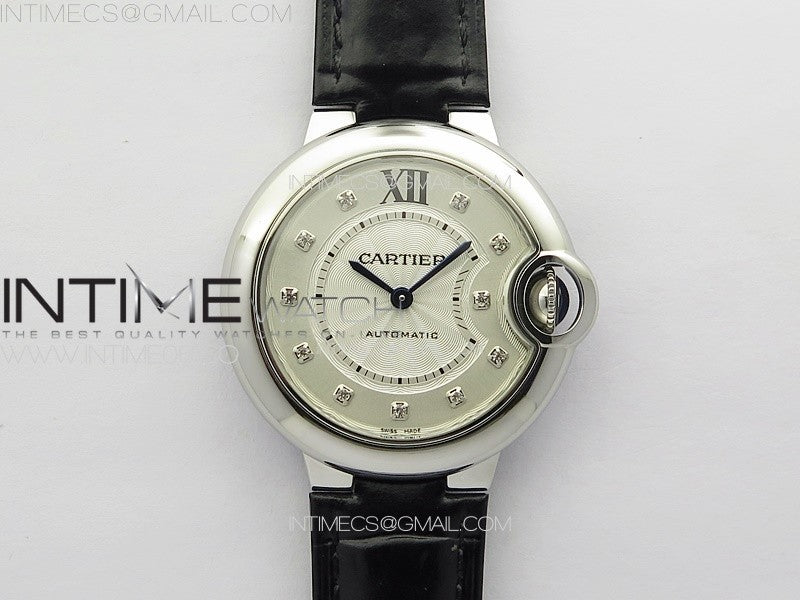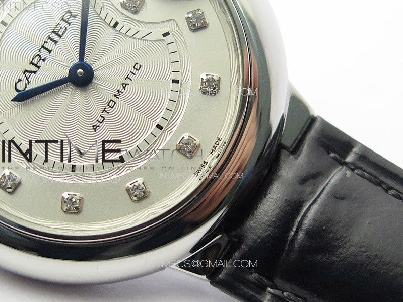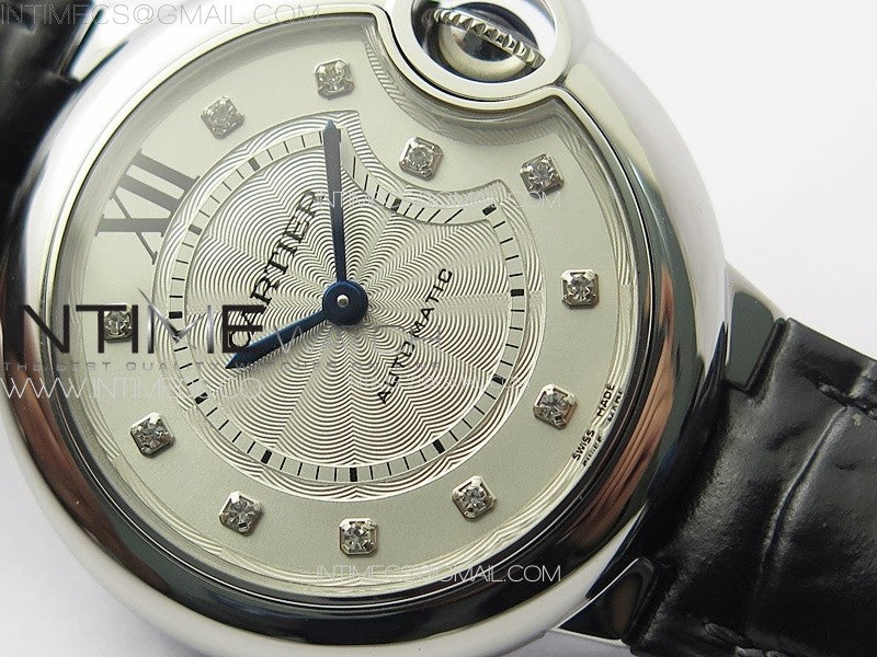 Ballon Bleu 33mm SS K3F 1:1 Best Edition White Textured Dia Markers Dial on Black Leather Strap A076