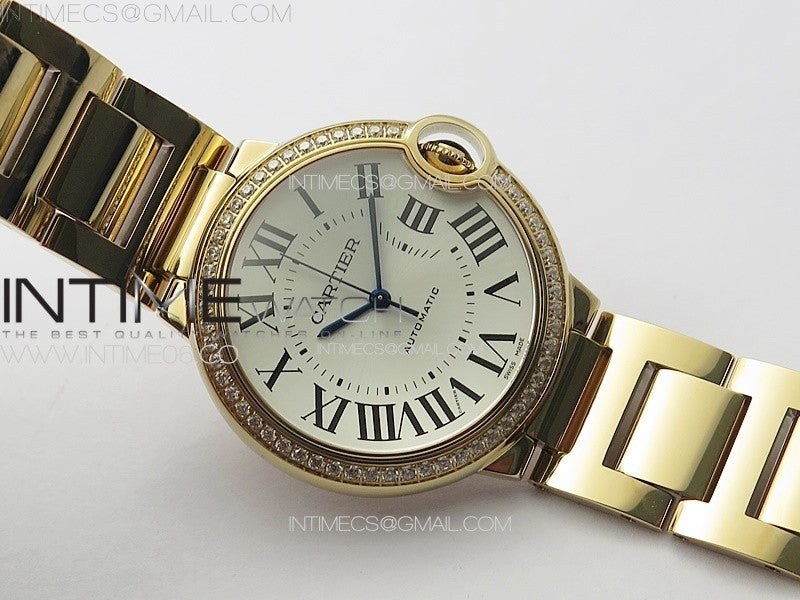 Ballon Bleu 36mm Diamonds Bezel RG K3F 1:1 Best Edition White Textured Dial on SS Bracelet A076