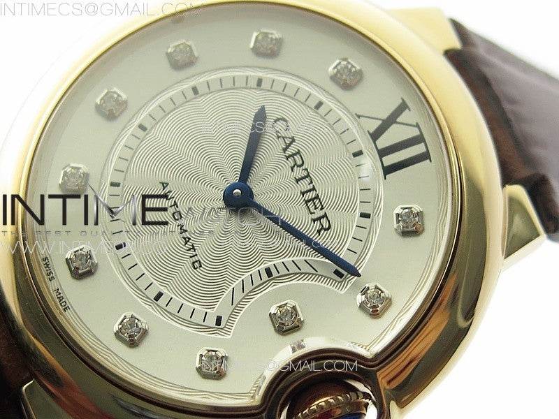 Ballon Bleu 36mm RG K3F 1:1 Best Edition White Textured Dia Markers Dial On Black Leather Strap A076