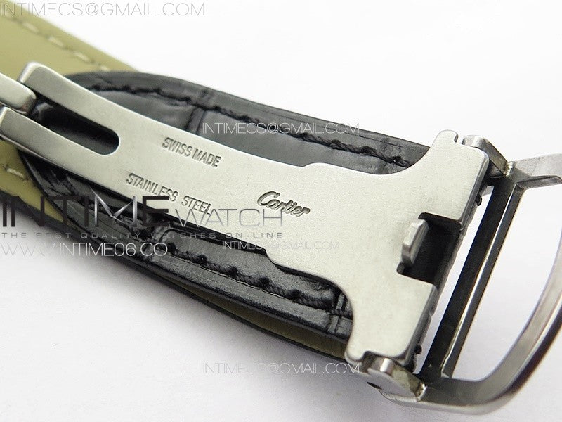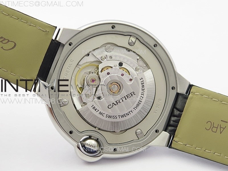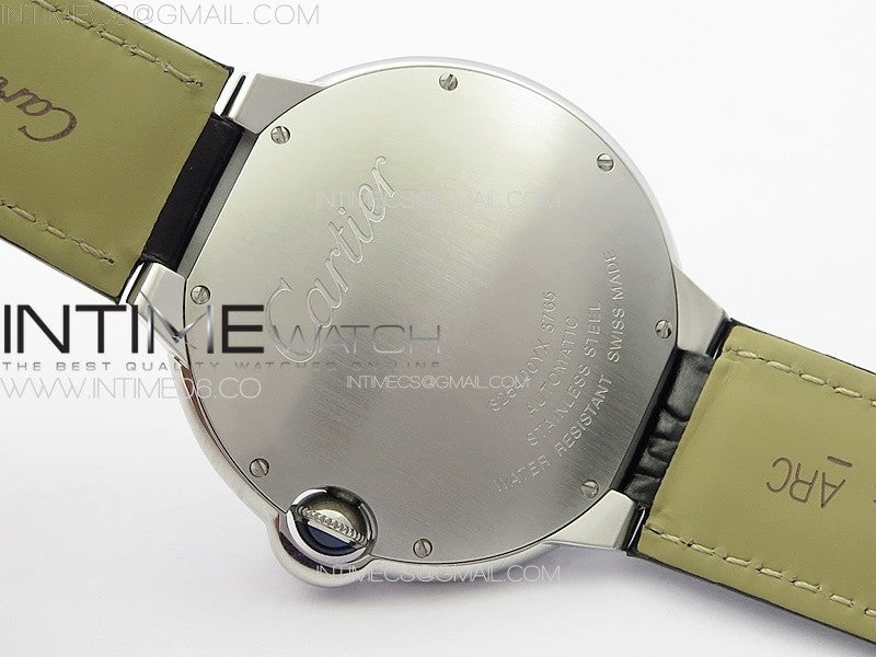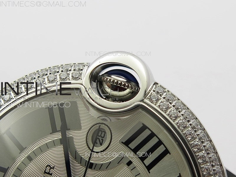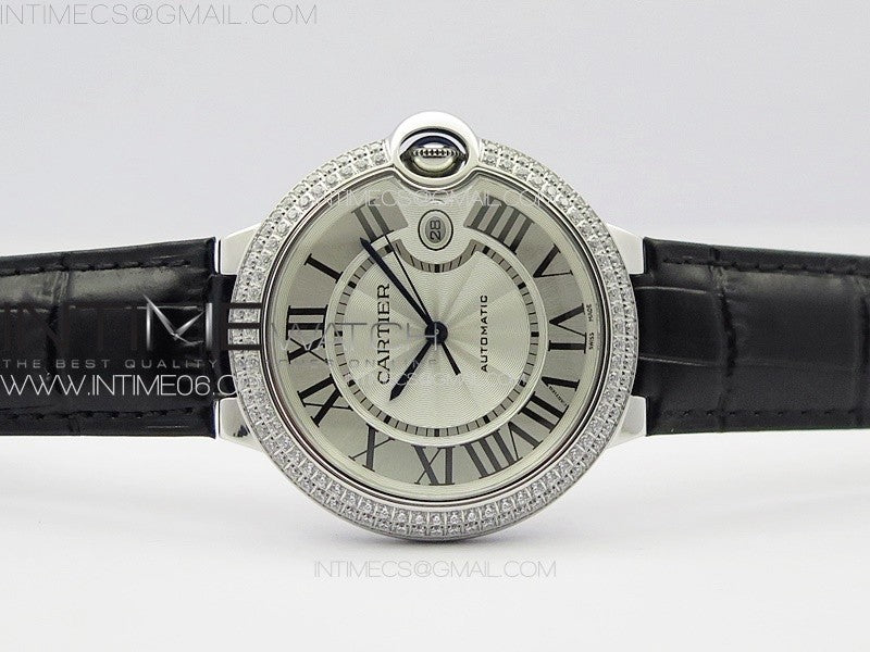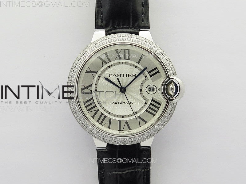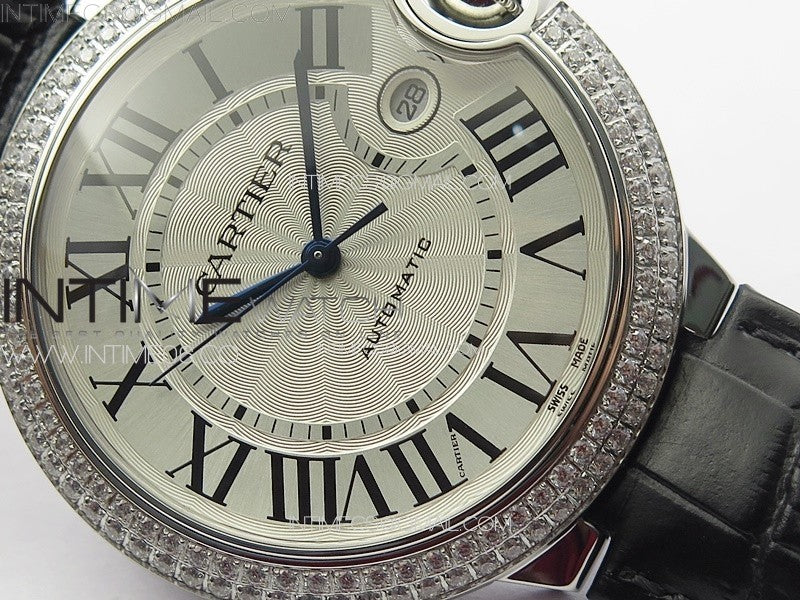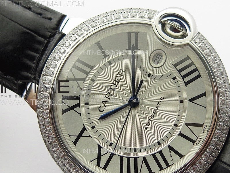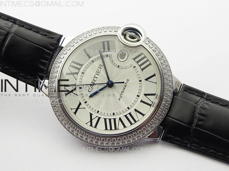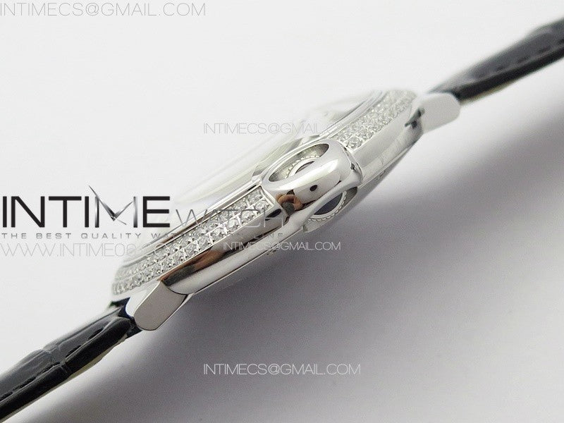 Ballon Bleu 42mm Diamonds Bezel SS K3F 1:1 Best Edition White Texture Dial on Black Leather Strap A2824