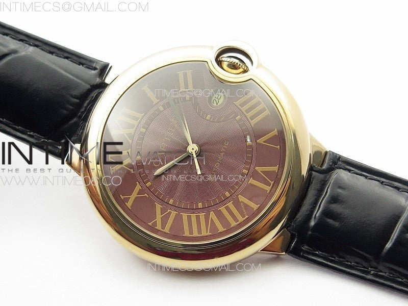Ballon Bleu 42mm RG K3F 1:1 Best Edition Brown Texture Dial on Brown Leather Strap A2824