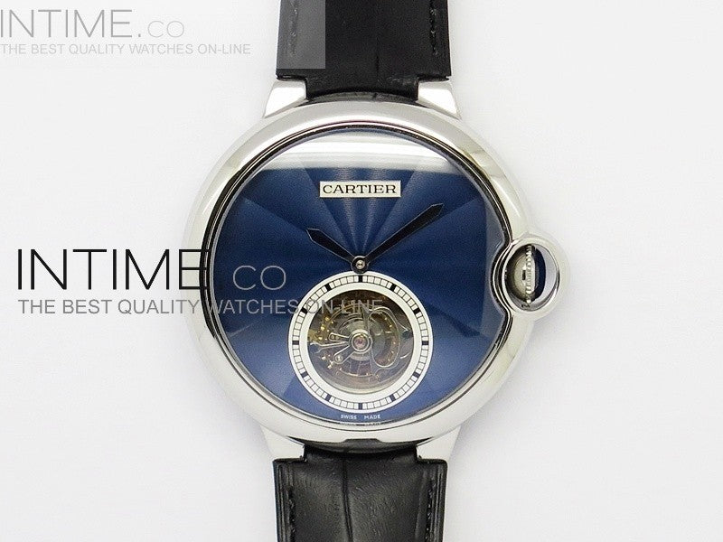 Ballon Bleu Tourbillon SS Blue Textured Dial on Black Leather Strap