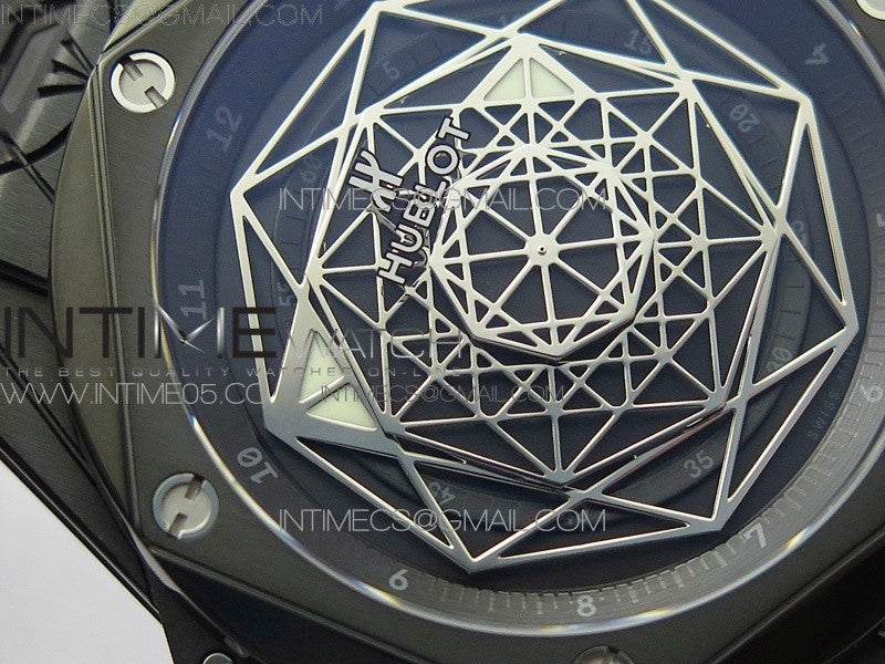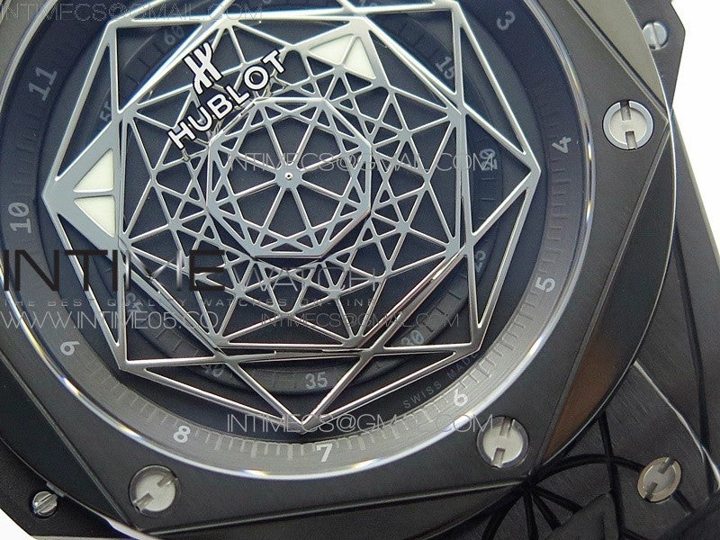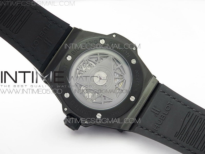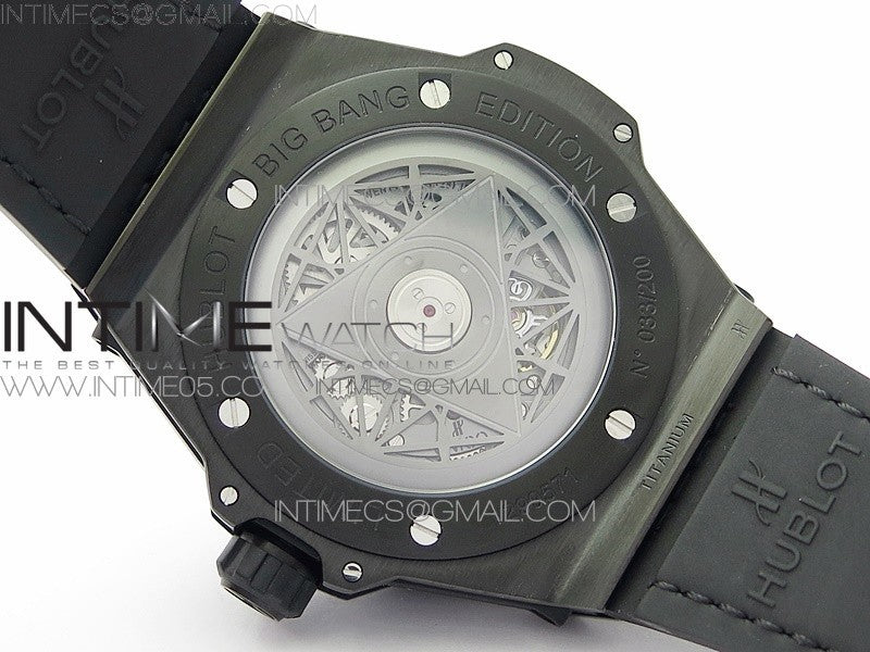 Big Bang Sang Bleu DLC Ti WWF 1:1 Best Edition Black Skeletonal Dial On Black Gummy Strap Asian HB1213 V2 Menge