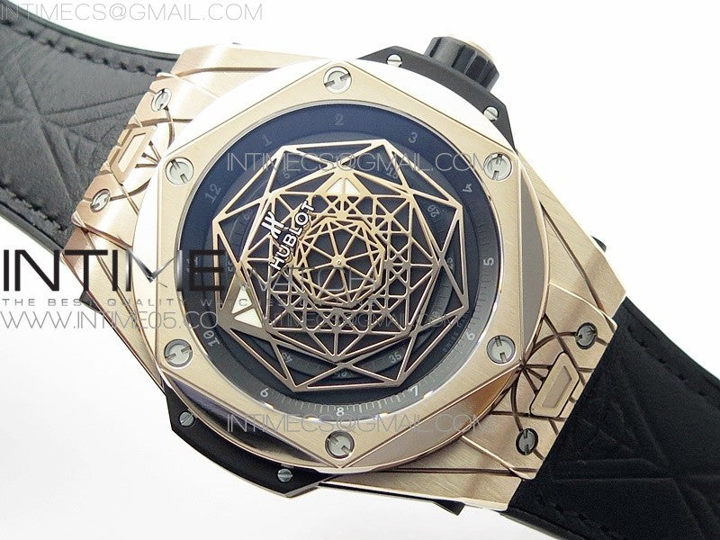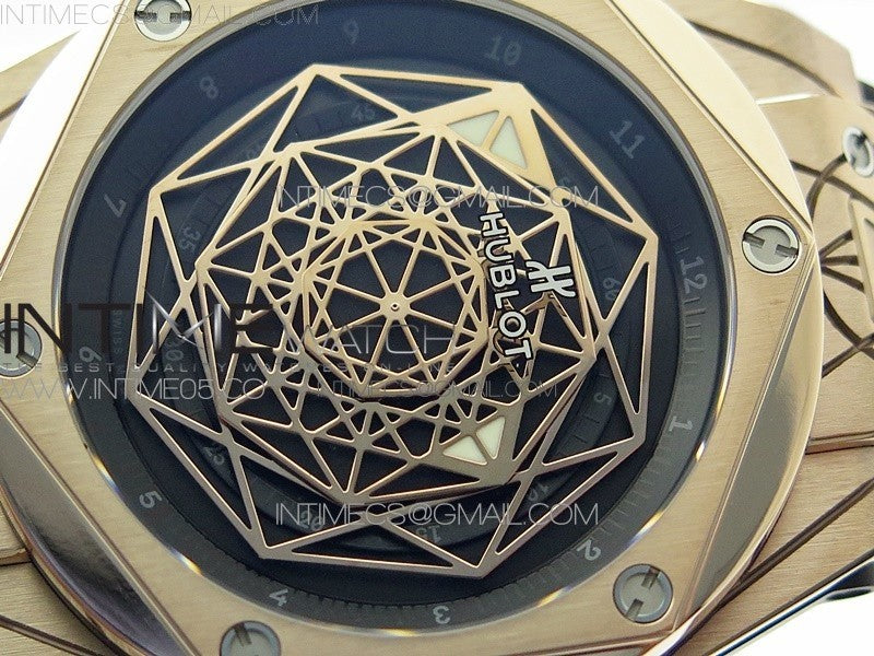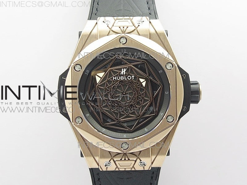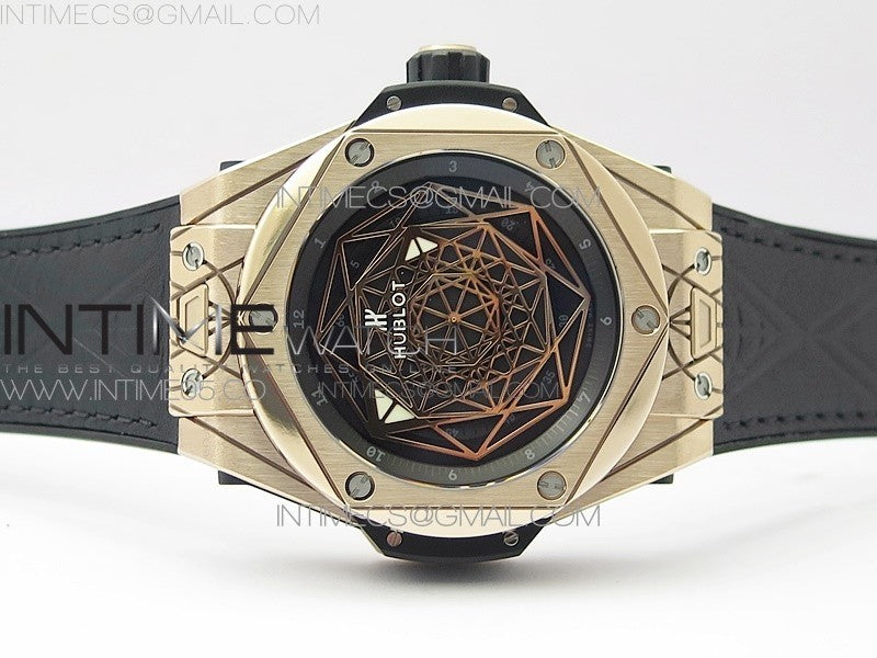 Big Bang Sang Bleu RG Ti WWF 1:1 Best Edition Black Skeletonal Dial On Black Gummy Strap Asian HB1213 V2 Menge