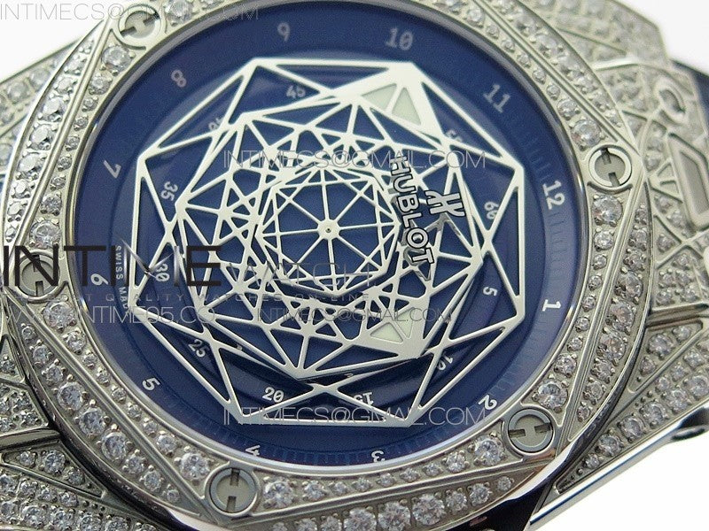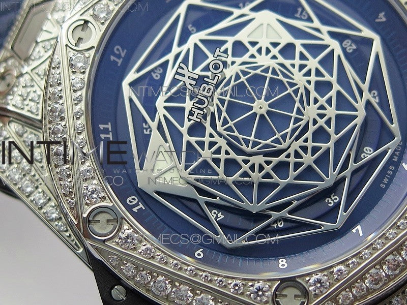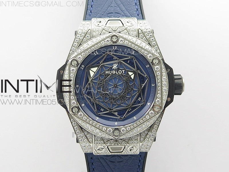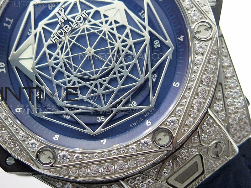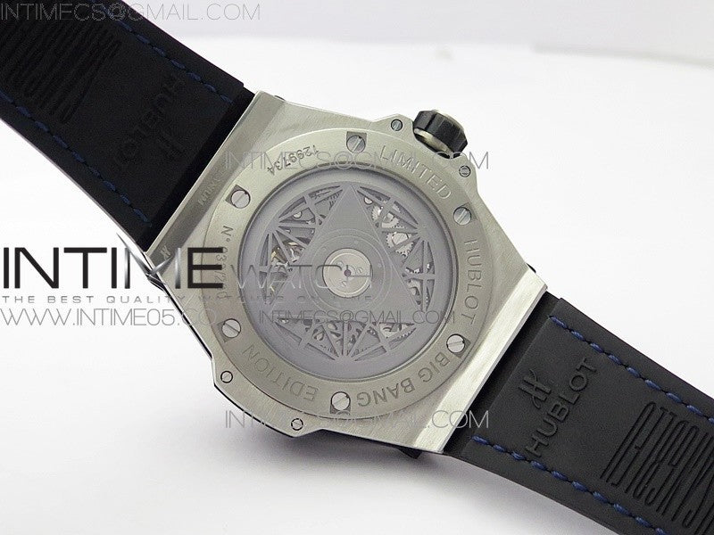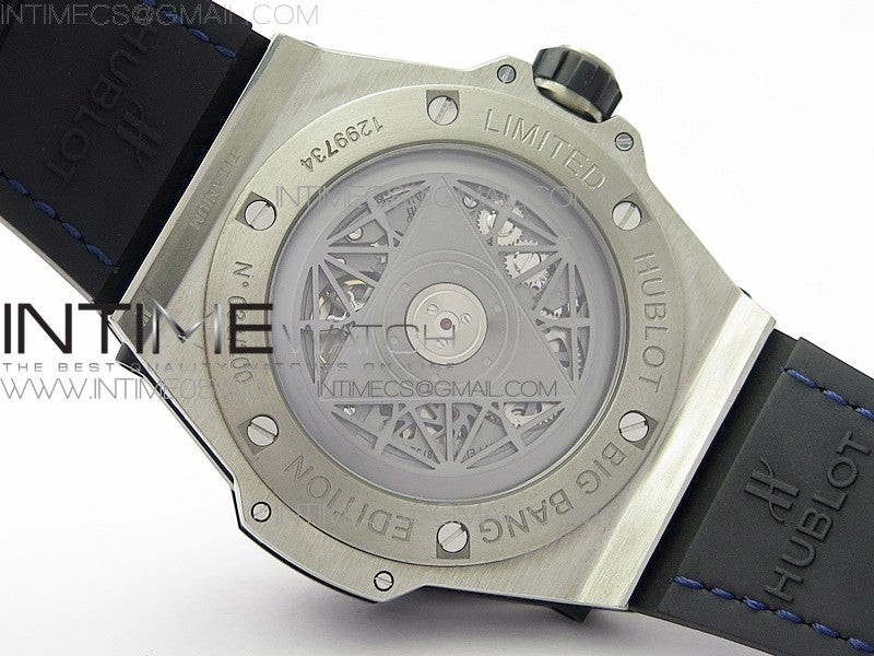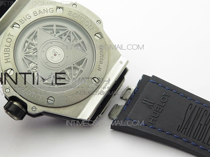 Big Bang Sang Bleu Ti Crystal Bezel And Case WWF 1:1 Best Edition Blue Skeletonal Dial On Blue Gummy Strap Asian HB1213 V2 Menge