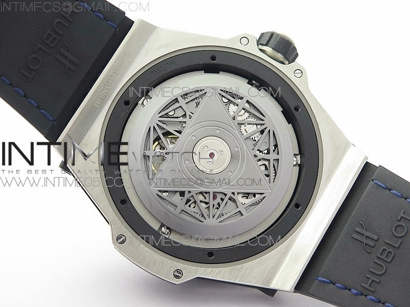 Big Bang Sang Bleu Ti Crystal Bezel And Case WWF 1:1 Best Edition Blue Skeletonal Dial On Blue Gummy Strap Asian HB1213 V2