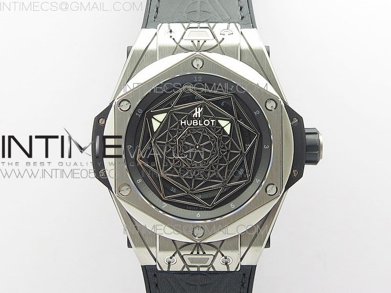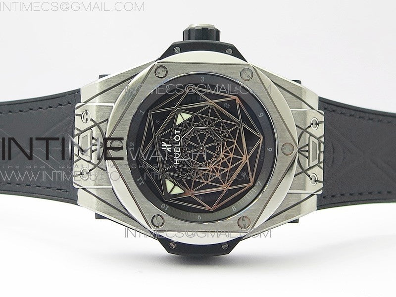 Big Bang Sang Bleu Ti WWF 1:1 Best Edition Black Skeletonal Dial On Black Gummy Strap Asian HB1213 V2 Menge