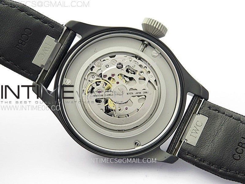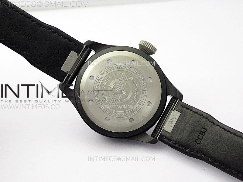 Big Pilot IW329801 Real Ceramic M+F 1:1 Best Edition Black Dial on Black Calfskin Strap SEIKO 8N-24