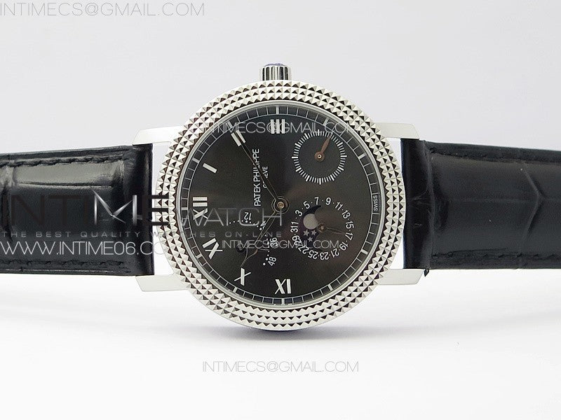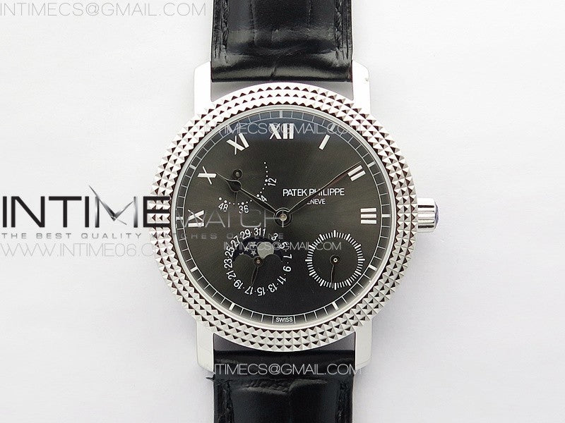 Calatrava 5057 Cortina Watch 50th Anniversary SS YSF 1:1 Best Edition Gray Dial on Black Leather Strap A240 Menge