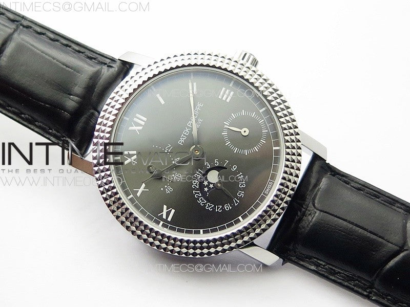Calatrava 5057 Cortina Watch 50th Anniversary SS YSF 1:1 Best Edition Gray Dial on Black Leather Strap A240