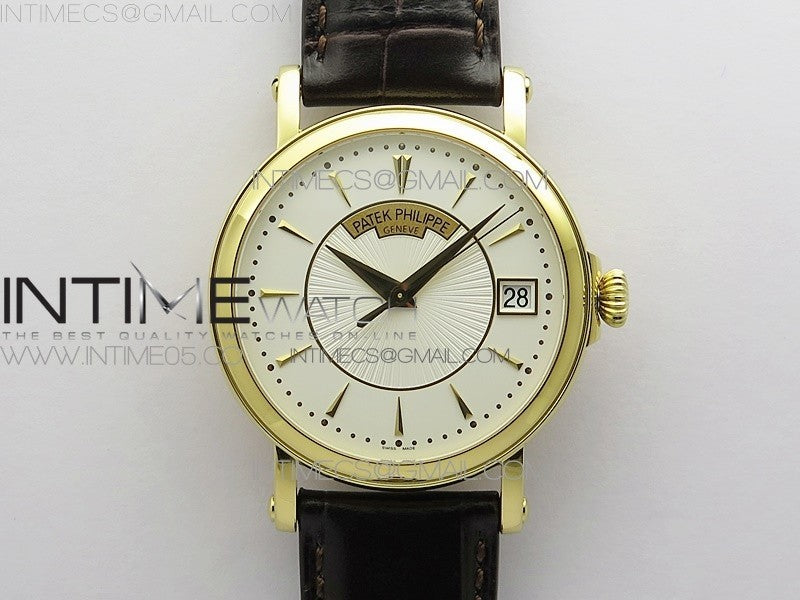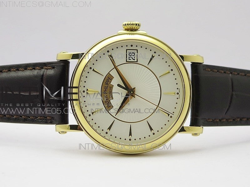 Calatrava 5153G-010 YG ZF 1:1 Best Edition White textured dial on Brown Leather Strap A324CS Menge