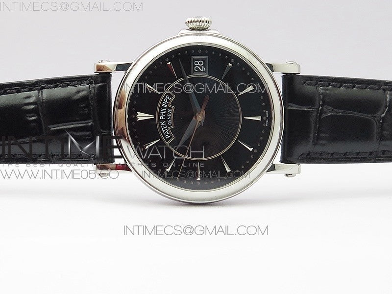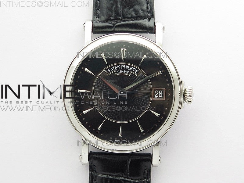 Calatrava 5153G SS ZF 1:1 Best Edition Black textured dial on Black Leather Strap A324CS Menge