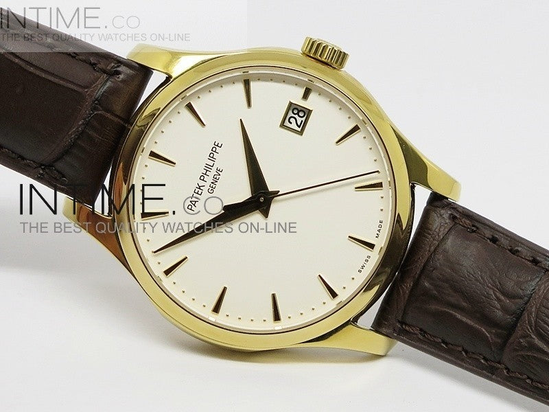Calatrava 5227 BP Version YG White Dial on Leather Strap Japanese MIYOTA 9015