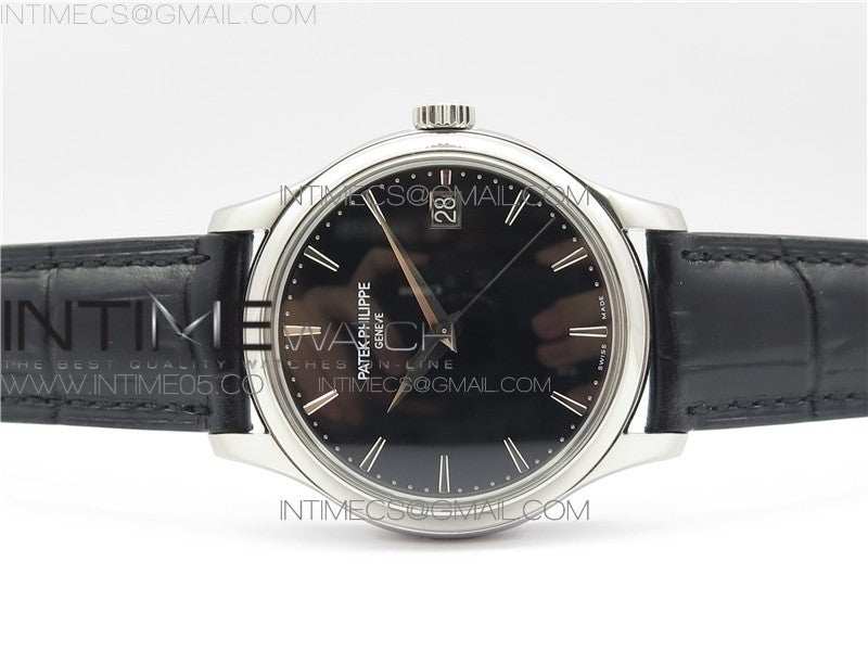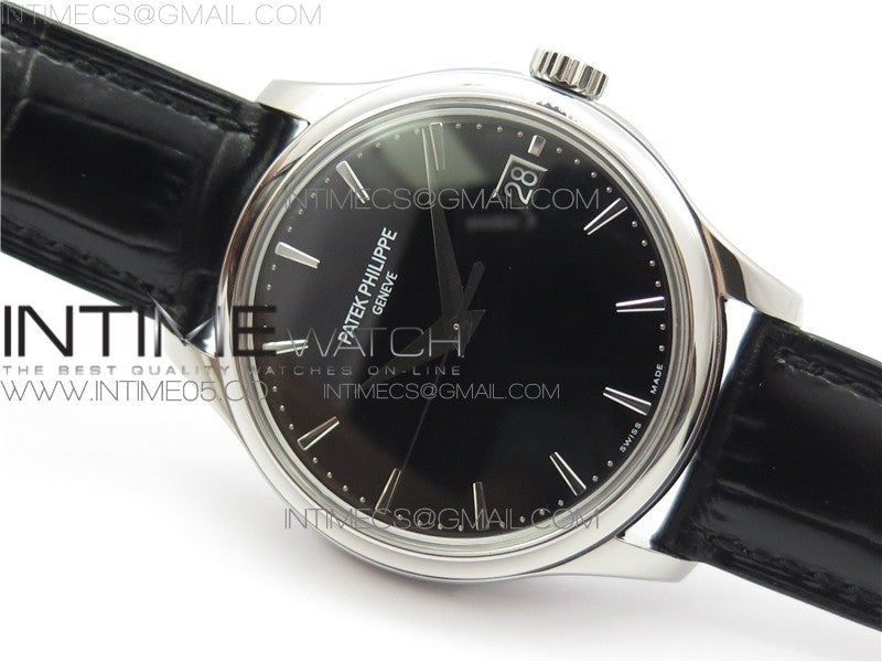 Calatrava 5227R SS ZF 1:1 Best Edition Black Dial on Black Leather Strap A324CS