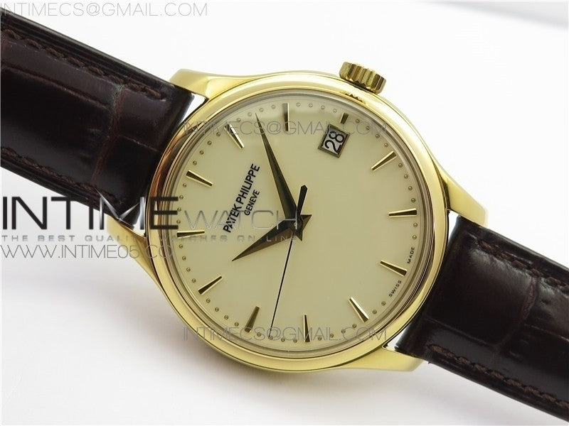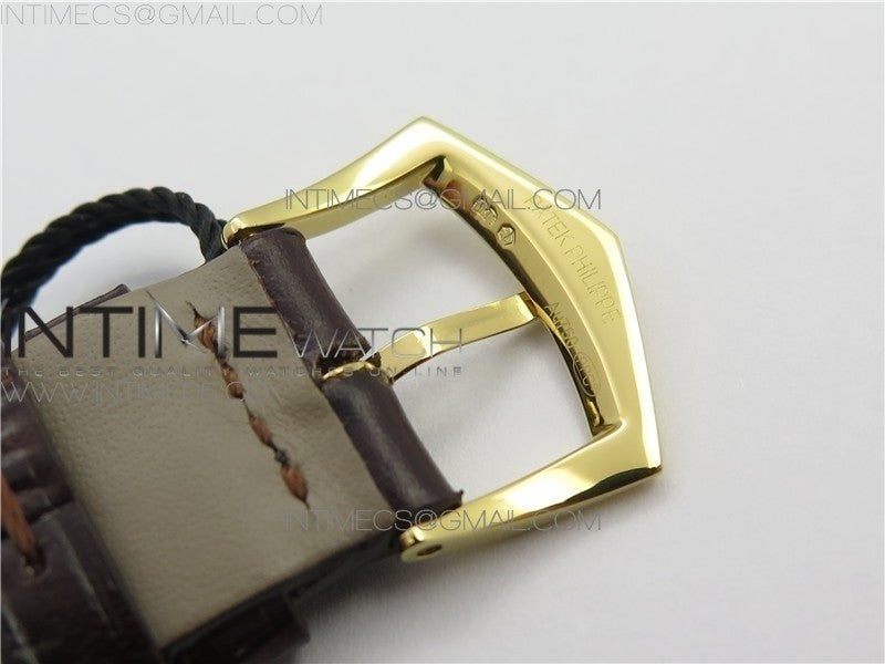Calatrava 5227R YG ZF 1:1 Best Edition Ivory Dial on Brown Leather Strap A324CS