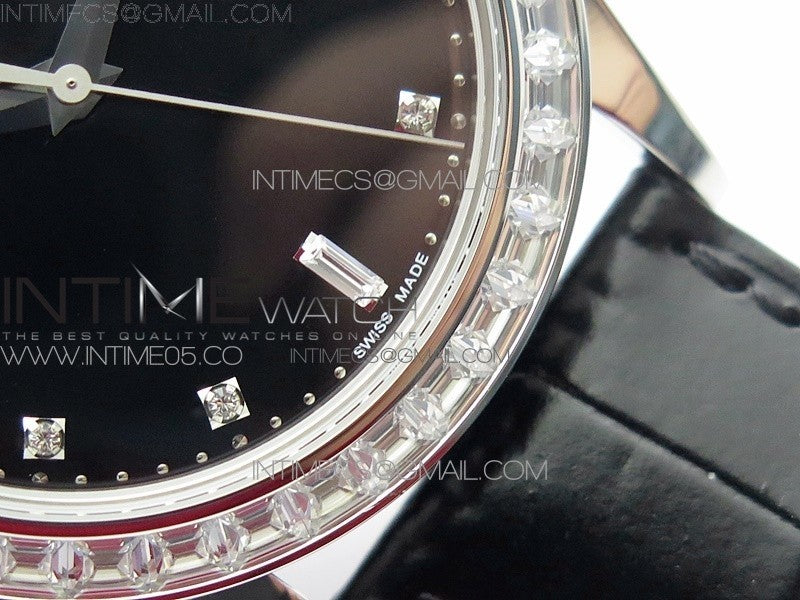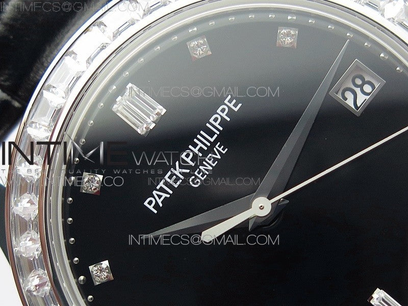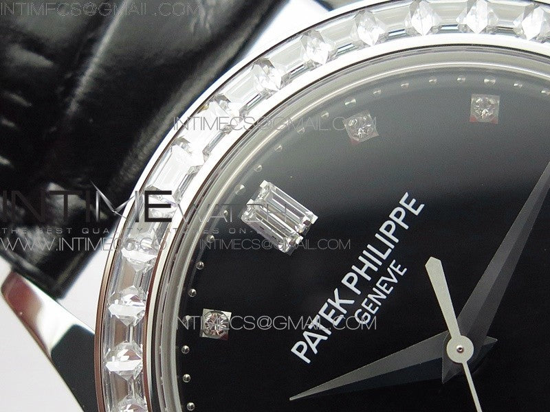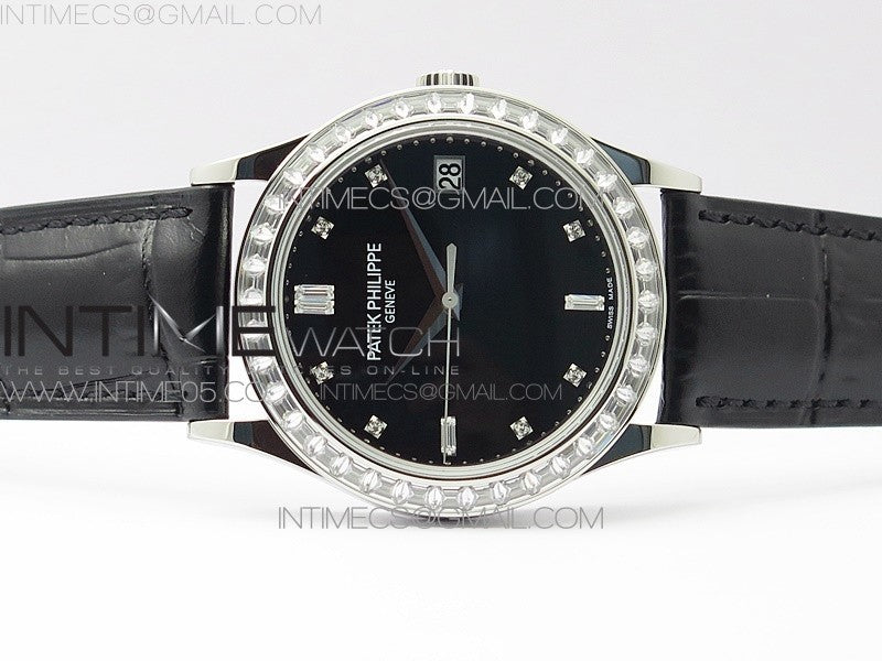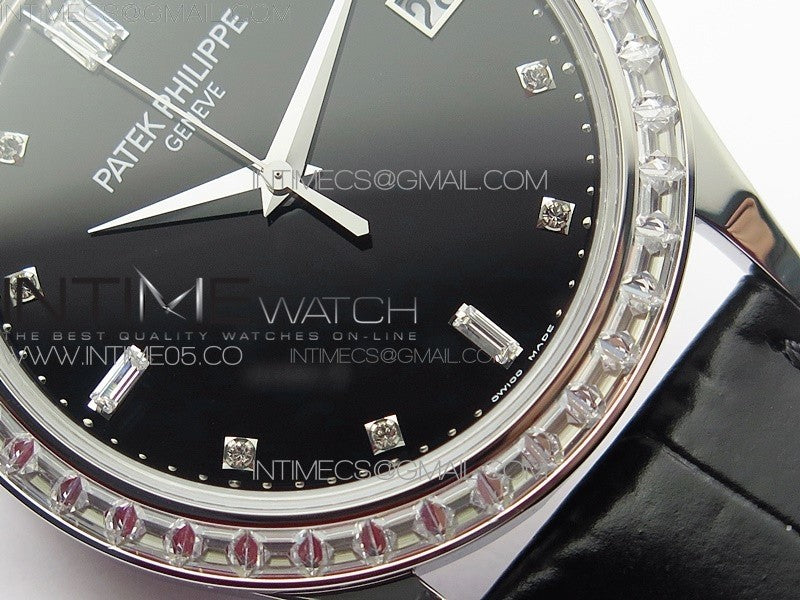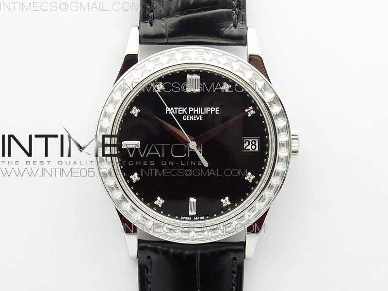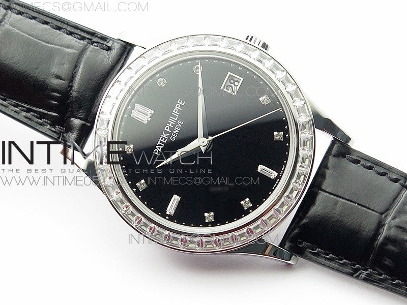 Calatrava 5298P-012 SS T Crystal Bezel ZF 1:1 Best Edition Black Dial on Black Leather Strap A324CS