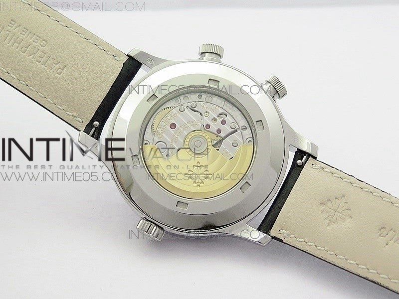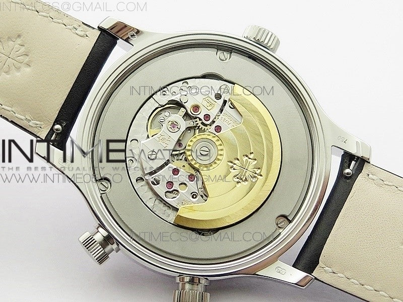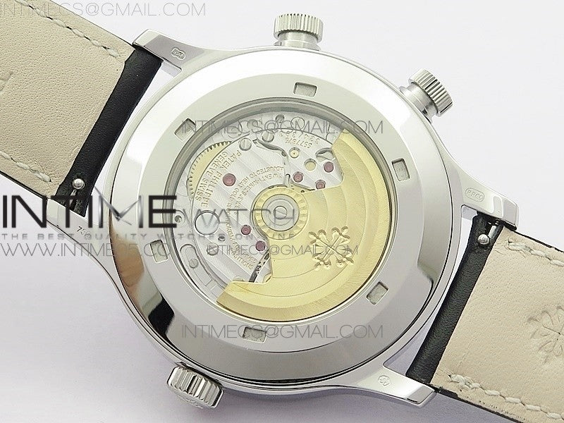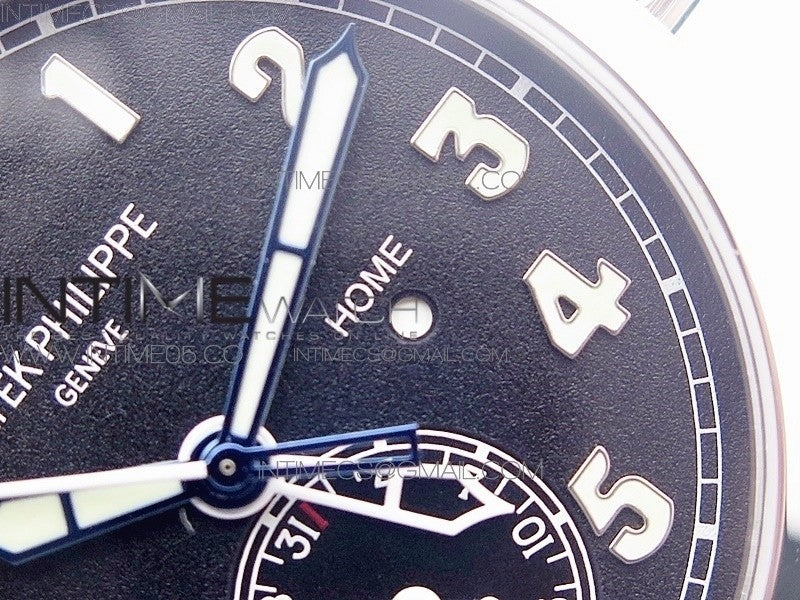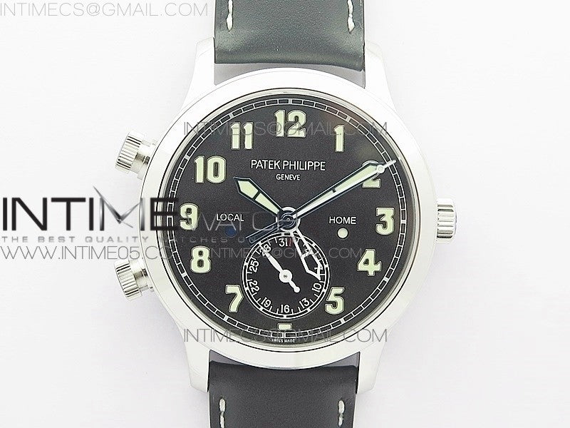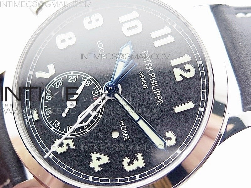 Calatrava 5524 Pilot Travel Time RG GRF Black Dial on Black Leather Strap A324 V2