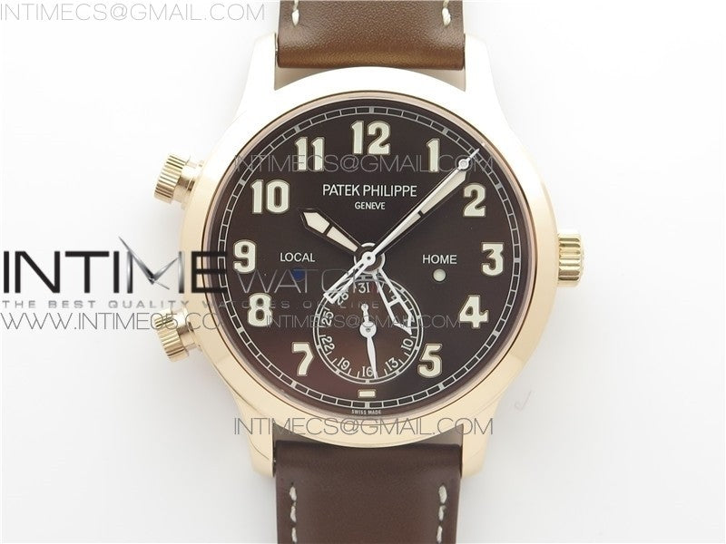 Calatrava 5524 RG Pilot Travel Time GRF Brown Dial on Brown Leather Strap MIYOTA 9015