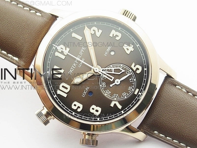 Calatrava 5524R Pilot Travel Time RG GRF Brown Dial on Brown Leather Strap A324 V2