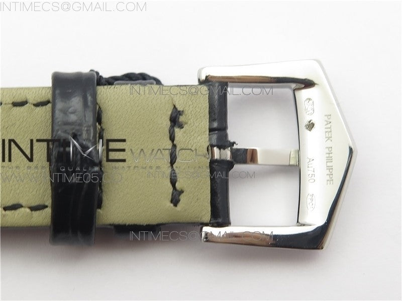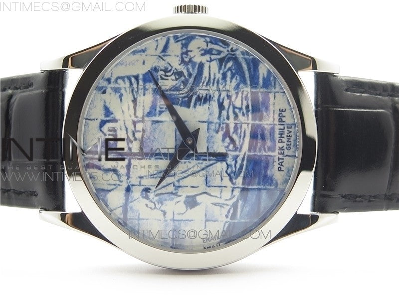 Calatrava Azulejos SS 5089G-62 FL Enamel Dial on Black Leather Strap