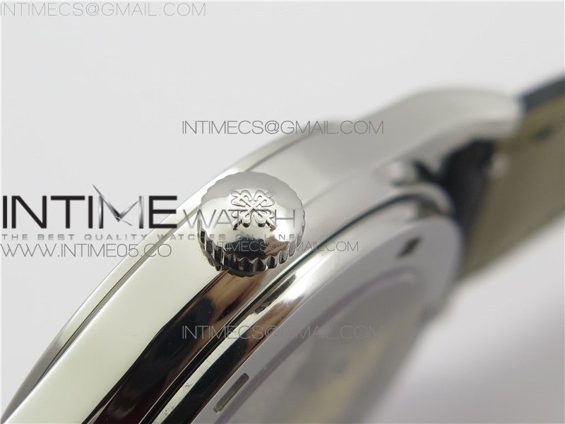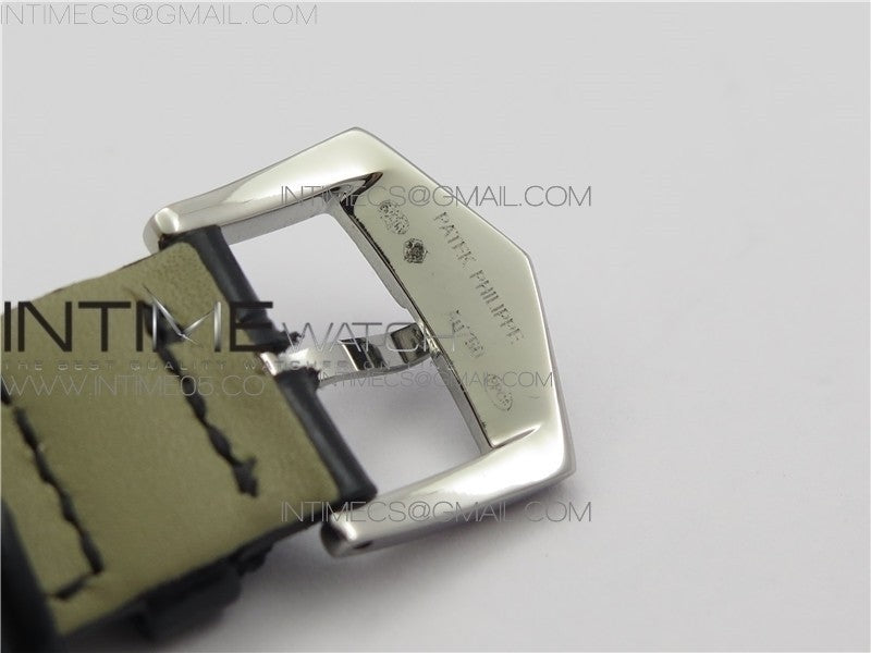 6104P Moon SS 3EF Best Edition Blue Dial Green T Diamond Bezel on Blue Leather Strap A240