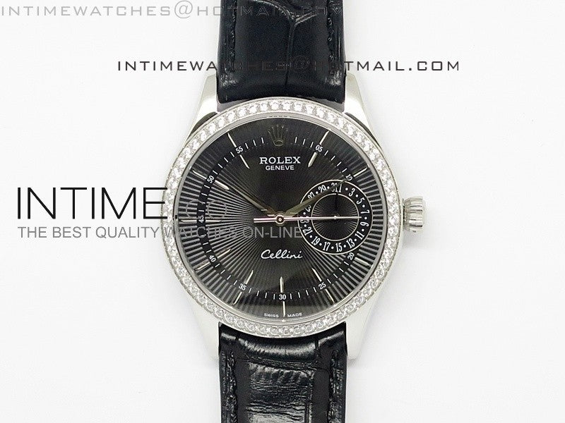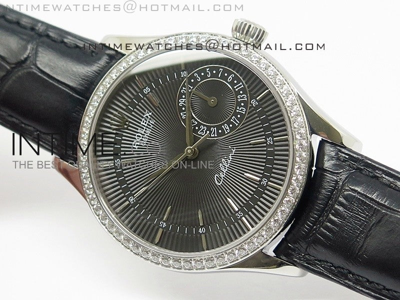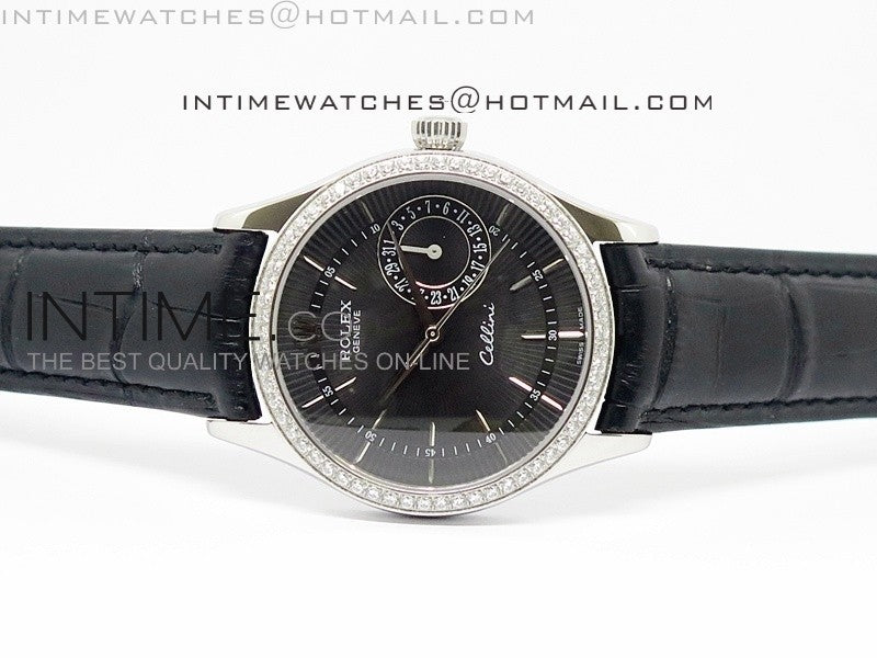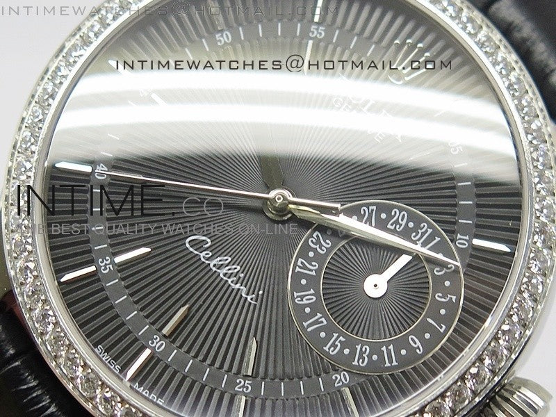Cellini Date BP Maker SS Diam Bezel Black Dial on Black Leather Strap Menge