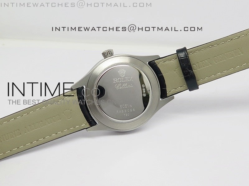Cellini Date BP Maker SS Diam Bezel Black Dial on Black Leather Strap