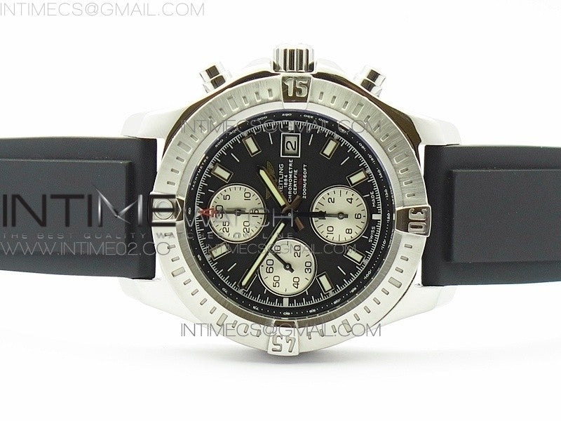Challenger Chronograph SS Black Dial on Rubber Strap A7750 (Free rubber strap)