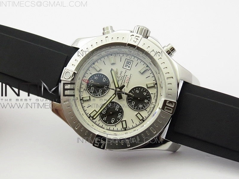 Challenger Chronograph SS White Dial on Rubber Strap A7750 (Free rubber strap)