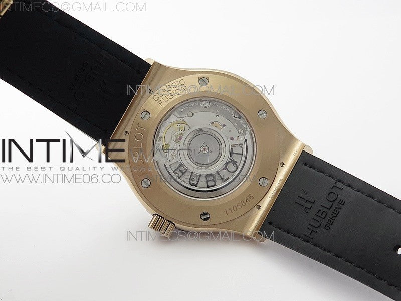 Classic Fusion 42mm RG Paved Diamonds Bezel B50F Black Dial On Black Gummy Strap A2892 Menge